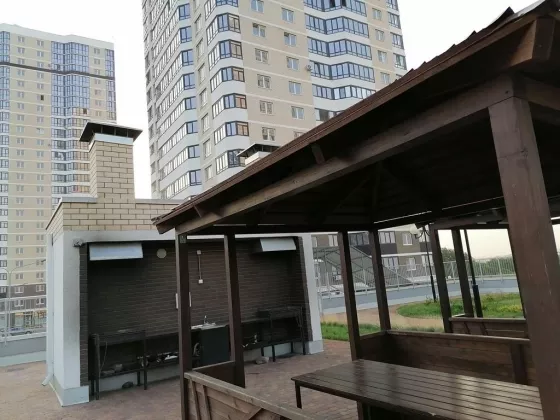 Дизайнерская входная группа, три скоростных лифта, есть консьерж и колясочная зона. Стилобат, с парковкой и большой детской площадкой на которой - футбольное и баскетбольное поле, спортивная зона и уютные беседки с мангалом.