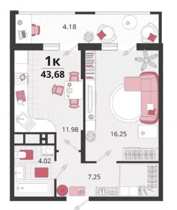 Продается 2-х комн. новостройка, 43.68 кв.м., 15/18 эт