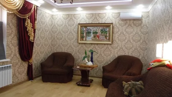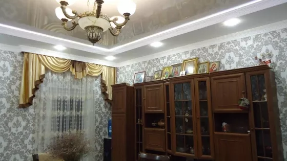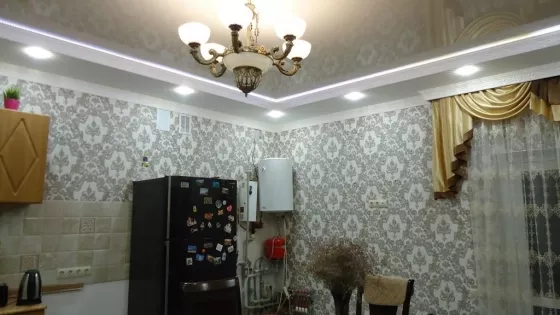 Дом с евроремонтом, использовались очень качественные и дорогие материалы, делали дом не на продажу, а для себя. Тёплый пол везде ,кроме спален, большая кухня гостиная 27 м.кв., три жилые комнаты, гардеробная и прихожая. На заднем дворе сделана кладовая комната с надежными полками и терасса с рольставнями.