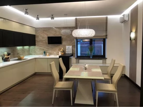 Дом с гаражом, сауной,ремонтом и мебелью.В доме много пространства,Из прихожей вы попадаете в огромный хол-гостинную, имеющую выход в зону отдыха типа-терраса.Имеется детская комната,гостевая комната , родительская спальня с гардеробной и своей ванной комнатой.Внутренняя отделка дома выполнена по проекту дизайнера,с использованием дорогостоящих качественных материалов. Во дворе ландшафтный дизайн, застекленная беседка. Все коммуникации центральные, Подъездные пути-асфальт.