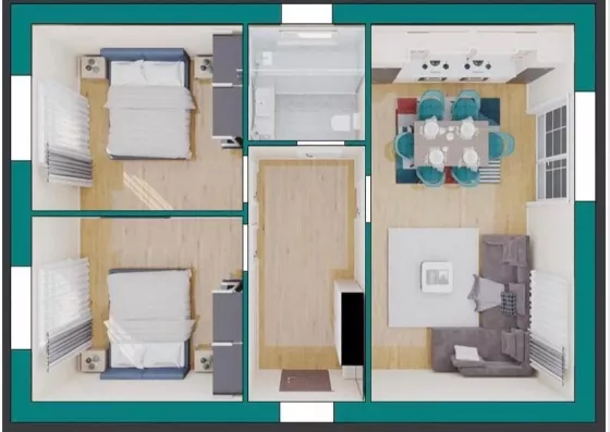 В доме две большие комнаты и огромная кухня гостиная. Сделан качественный ремонт, на стенах обои, пол ламинат. В ванной комнате кафель стены и потолок, натяжные потолки во всех комнатах.