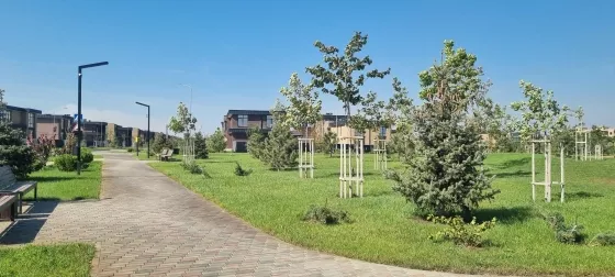В поселке уже построен сквер для прогулок и детские городки. Будет озеро с ресторанами и магазинами.