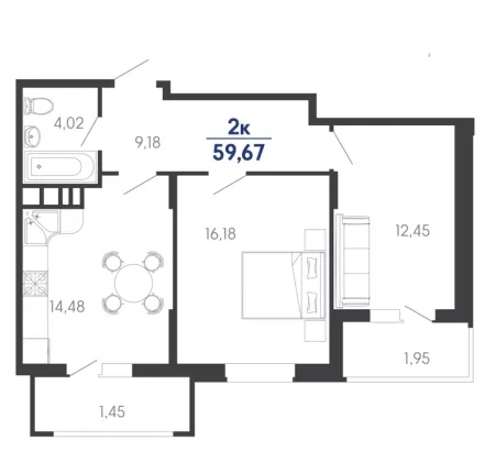 Продается 2-х комн. квартира, 59.67 кв.м., 7/9 эт