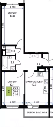 Продается 2-х комн. квартира, 52 кв.м., 11/19 эт