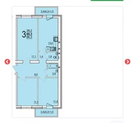 | Площадь, кв.м. | 66.3 |