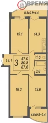 Продается 3-х комн. квартира, 88 кв.м., 6/17 эт