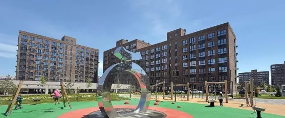 Уютные беседки, современные детские и спортивные площадки на стилобате, автоматические поливы газонов, аллеи для прогулок, широкие дворы.