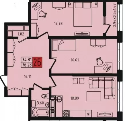 Продается 2-х комн. квартира, 76.28 кв.м., 2/7 эт
