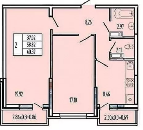 | Площадь, кв.м. | 60 |