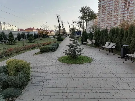 В центре района аллея с зелёными насаждениями протяжённостью более 700 метров, есть отдельная дорожка для велопрогулок и катания на роликах, удобные лавочки и большие красивые фонари. С парковкой проблем нет, можно парковаться бесплатно или купить парковку или арендовать. Здесь удобные наземные парковки на верху которых расположены целые детские городки!