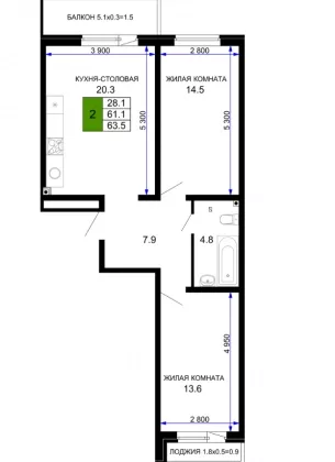 Продается 2-х комн. квартира, 64.61 кв.м., 2/16 эт