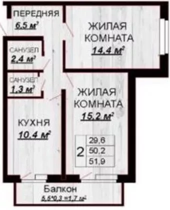 | Площадь, кв.м. | 52 |