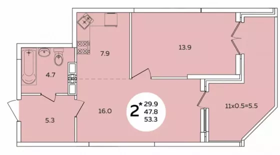 Продается 2-х комн. квартира, 53.3 кв.м., 12/24 эт