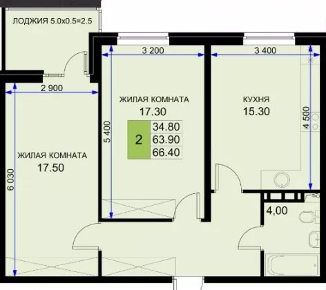 Продается 2-х комн. квартира, 66.4 кв.м., 6/7 эт