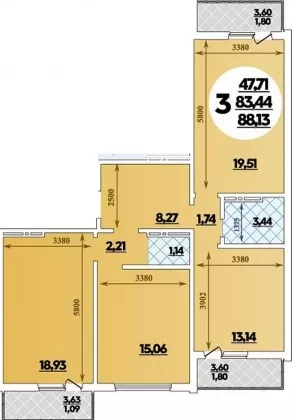 | Площадь, кв.м. | 88 |