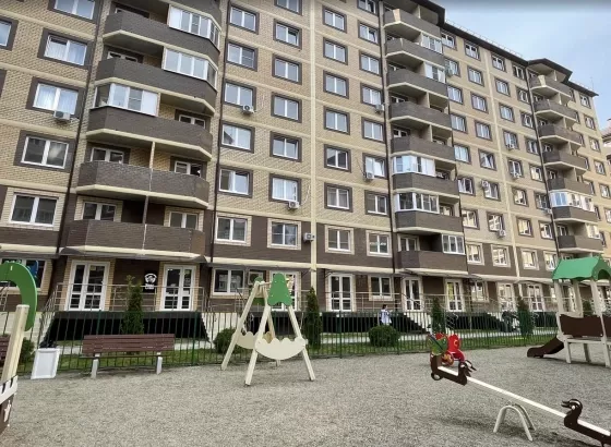 Закрытый жилой комплекс, с детскими и спортивными площадками, на территории фруктовый сад, аллеи для прогулок, на пером этаже коммерческие помещения с форматом "магазины у дома".