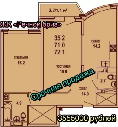 Продается 2-х комн. квартира, 72 кв.м., 15/18 эт