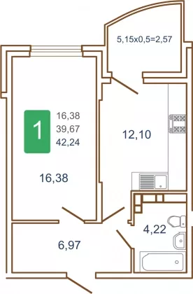 Продается однокомнатная квартира, 40.77 кв.м., 3/16 эт