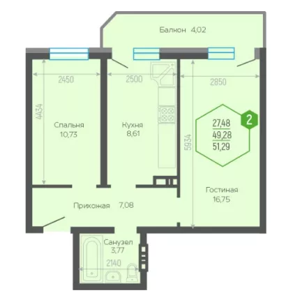 Продается 2-х комн. квартира, 51.29 кв.м., 4/19 эт