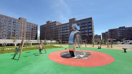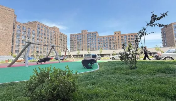 Уютные беседки, современные детские и спортивные площадки на стилобате, автоматические поливы газонов, аллеи для прогулок, широкие дворы.