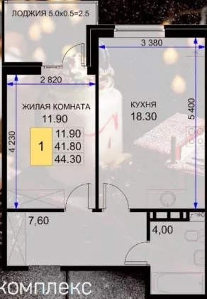 Продается однокомнатная квартира, 44.3 кв.м., 7/7 эт