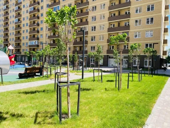 Продаётся уютная квартира в новом комплексе в спальном районе города, современная планировка с большими кухнями , красивая аллея ландшафтным дизайнером,
