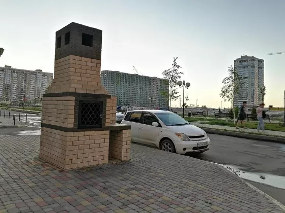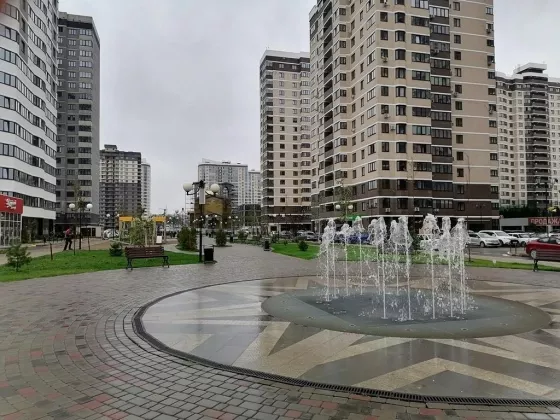 Рядом с домом строится школа и по генеральному плану большой детский садик два торговых центра . Для прогулок зеленая аллея с поющим фонтаном, в центре жилищного комплекса красивый храм.