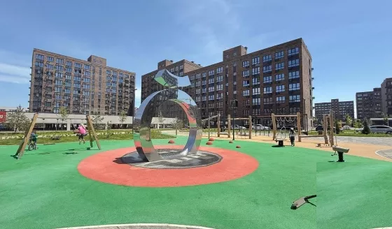 Уютные беседки, современные детские и спортивные площадки на стилобате, автоматические поливы газонов, аллеи для прогулок, широкие дворы.