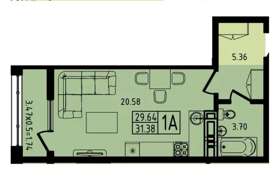 Продается Студия квартира, 31.38 кв.м., 4/9 эт