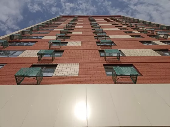 Просторные дворы с детскими и спортивными площадками, красивые входные группы, в каждом подъезде колясочная, лапомойка, туалет.