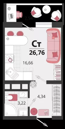 Продается Студия квартира, 26.76 кв.м., 7/18 эт