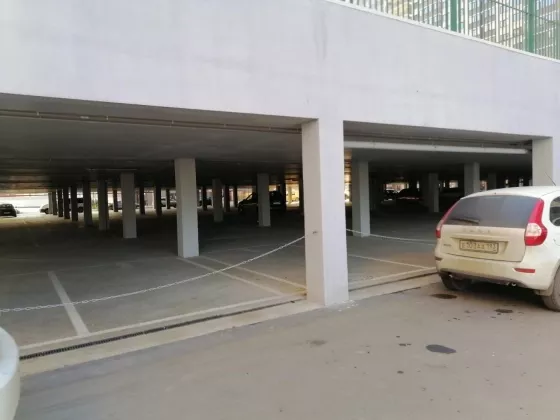 Во дворе крытая автомобильная парковка первый этаж , а второй этаж детские , спортивные площадки и горки.