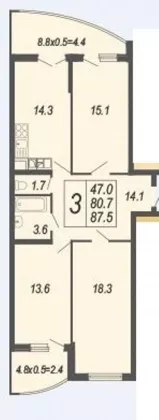 Продается 3-х комн. квартира, 87.5 кв.м., 2/19 эт