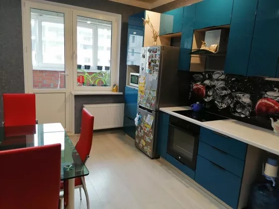 Квартира с частичным ремонтом, ванная комната отделана современной плиткой, отремонтирована кухня и гостиная. Квартира в уютном жилом комплексе из малоэтажных домов. Тихие закрытые дворы, беседки , тренажеры, современные детские площадки, большая парковка. Активно строится новая школа и детский садик. Сейчас в школу возит детей комфортабельный автобус. Рядом много магазинчиков и кафэшек, очень красивая ухоженная территория, широкие дворы, яркие фасады — это ЖК «Краски».