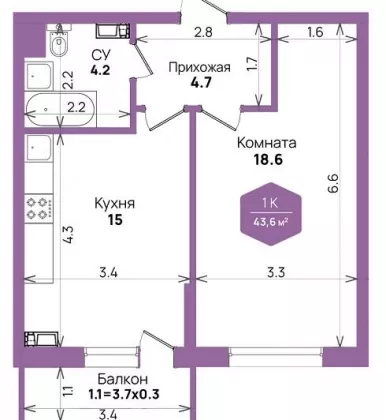 | Площадь, кв.м. | 43.6 |