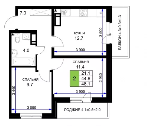 Продается 2-х комн. новостройка, 48 кв.м., 5/16 эт