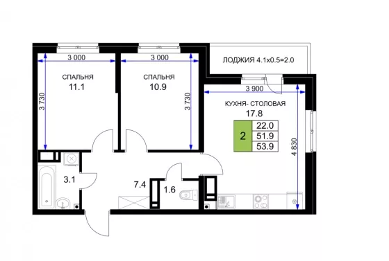 | Площадь, кв.м. | 54 |