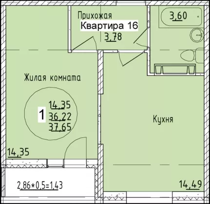 Продается однокомнатная новостройка, 38 кв.м., 14/16 эт
