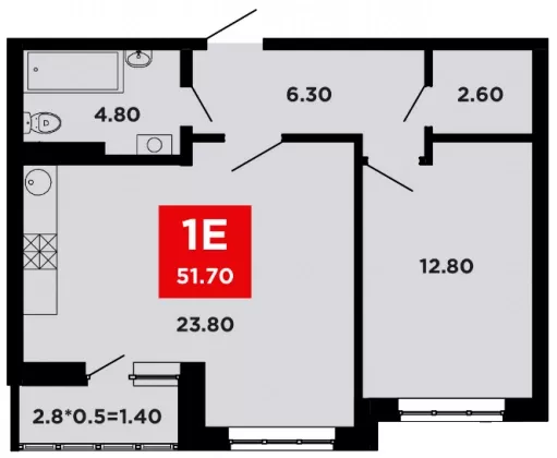 Продается однокомнатная новостройка, 52.1 кв.м., 9/20 эт