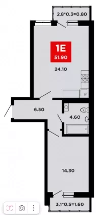 Продается однокомнатная новостройка, 52.3 кв.м., 9/20 эт