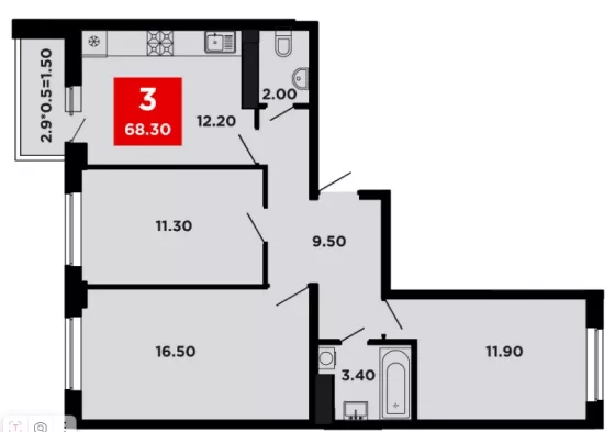 Продается 3-х комн. новостройка, 68.8 кв.м., 9/12 эт