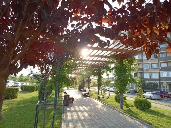 Достаточно выйти во двор- здесь много прогулочных зон с качелями, лавочками, беседками для отдыха, аллея, яблоневый сад!