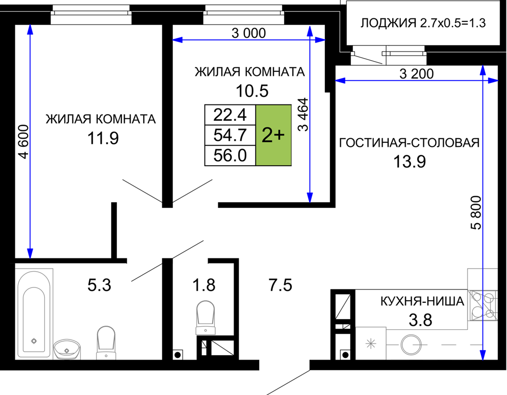 Площадь, кв.м. | 56 |