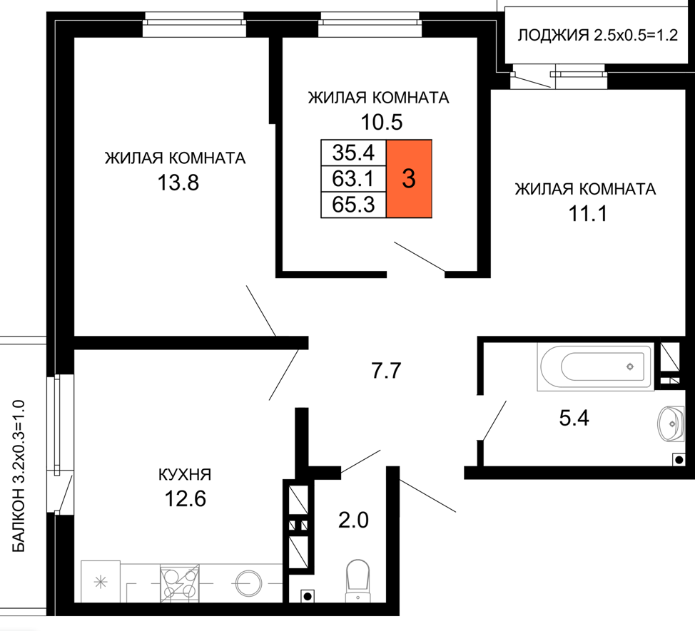 Продается 3-х комн. новостройка, 66.51 кв.м., 10/16 эт