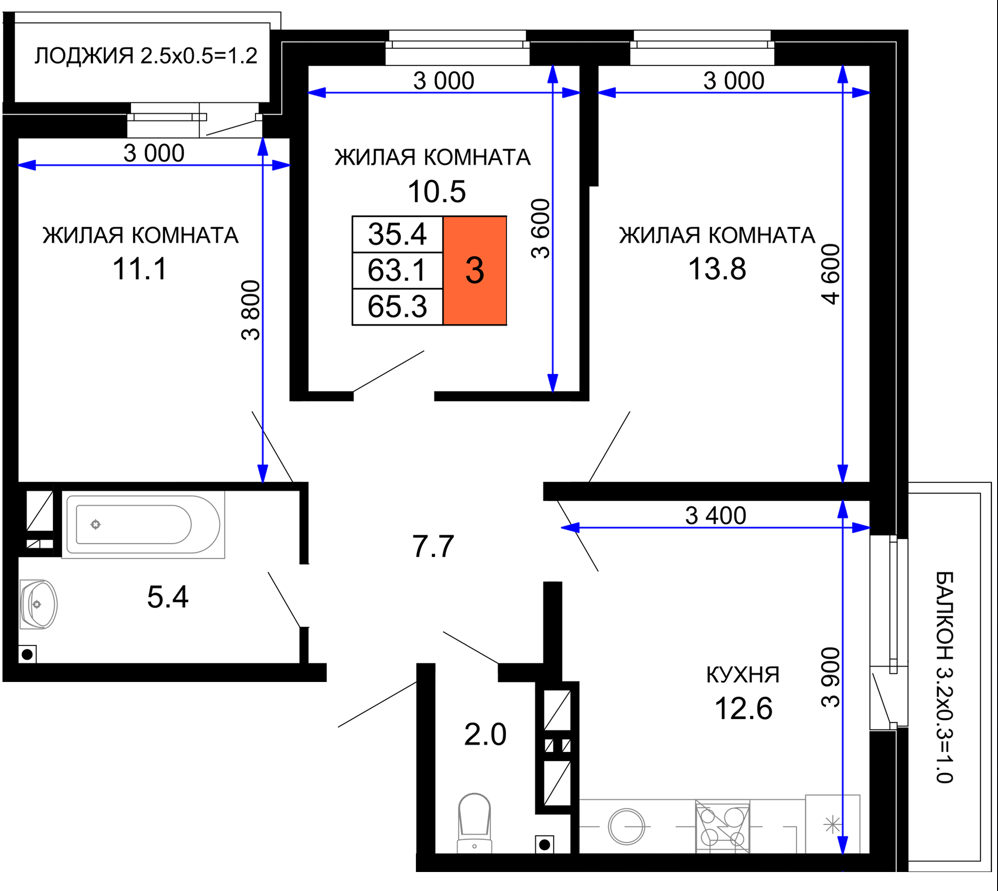Продаётся трехкомнатная квартира с просторным балконом и лоджией! ДОМ УЖЕ СДАН!!!