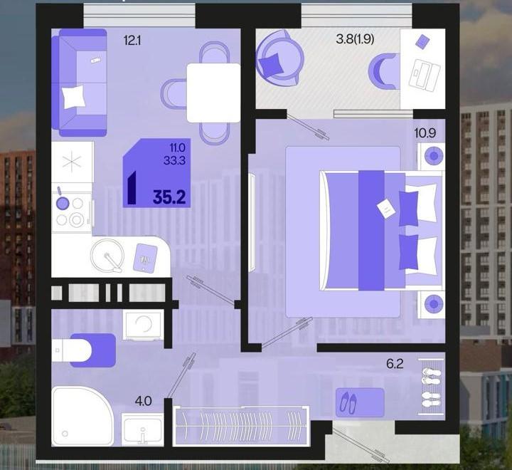 Продается однокомнатная новостройка, 35.2 кв.м., 17/18 эт