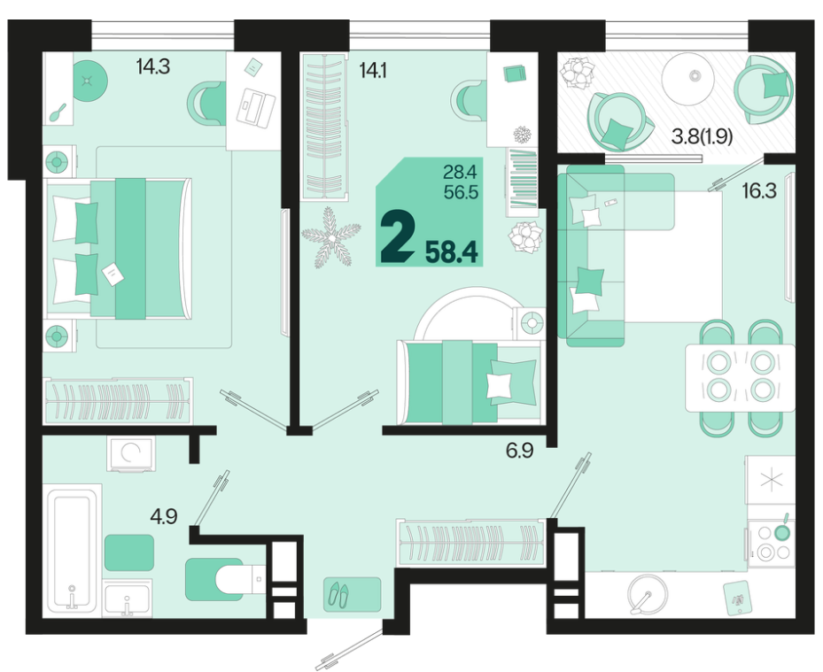 | Площадь, кв.м. | 58.4 |