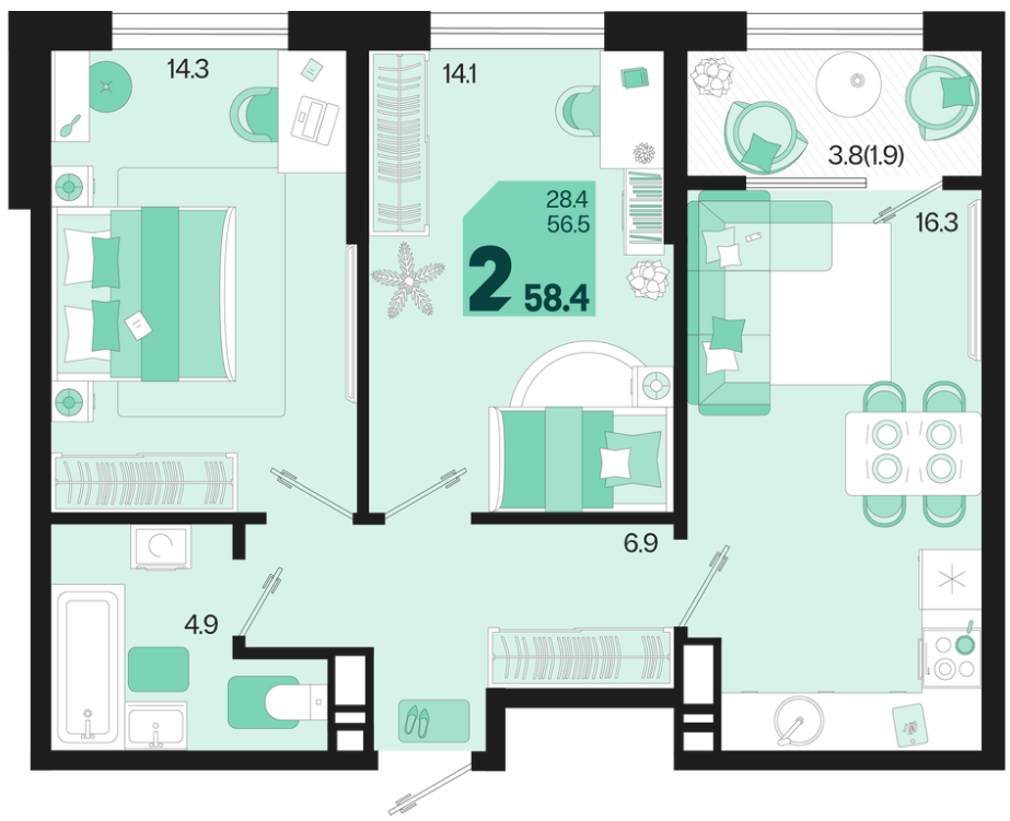 | Площадь, кв.м. | 58.4 |