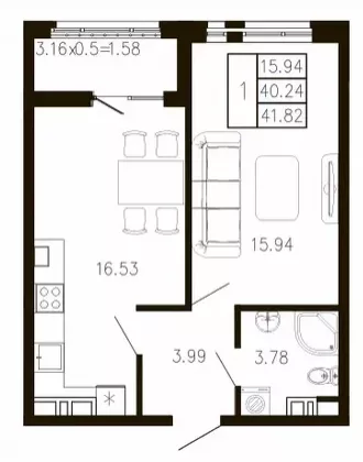 Продается однокомнатная новостройка, 41.82 кв.м., 4/9 эт