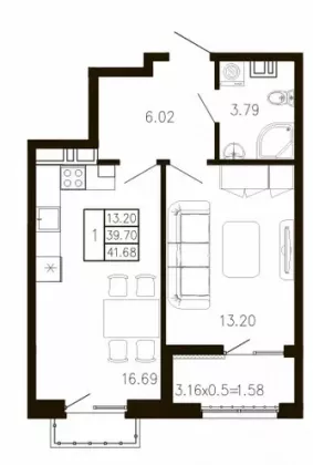 | Площадь, кв.м. | 41.68 |